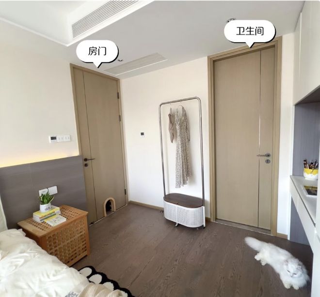 反观楼上楼下邻居家的户型,大多都是以经典的L形衣柜隔出卫生间门,不仅装修起来麻烦一些,收纳空间还小,更是影响空间感与采光通风,个人感觉远不如这位杭州姑娘的床尾整墙衣柜实用。