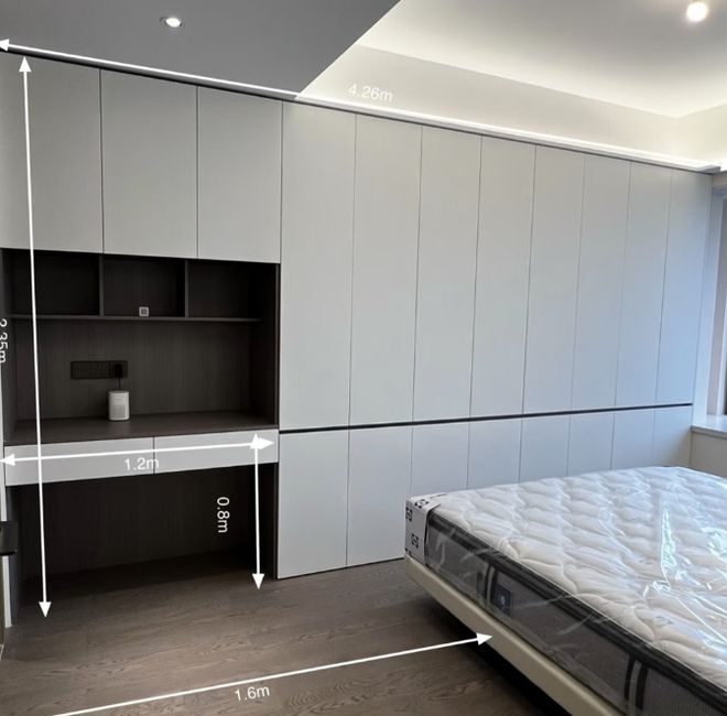 这长4米26、开间3米06的卧室,说起来也只有13㎡,但在做完这衣柜后,却有充足的睡眠、收纳、活动和工作空间,话不多说,这就一起来看看吧~
