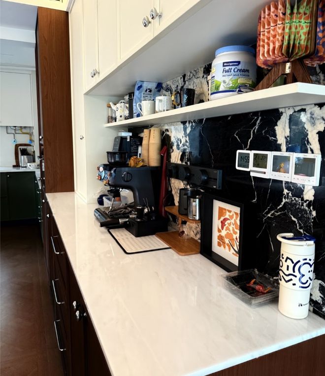 当时找做定制柜的公司做餐边柜和玄关柜,直接给柜子深度做成了60,刚入住的时候还没什么感觉,但真正用起来才发现,这60深的柜子不仅拿取东西不方便,还特别占用空间室内空间。