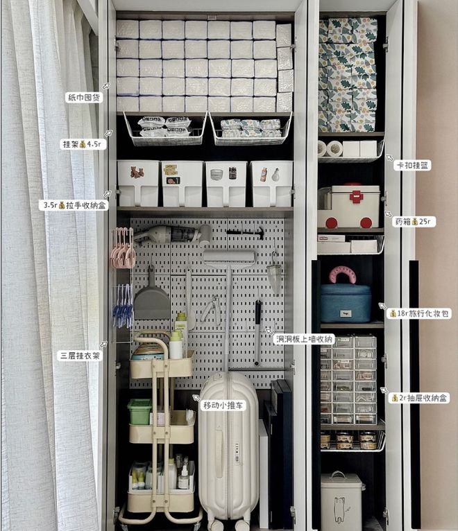 家里如果有空间的话,尽量留出一个杂物柜,当然,有杂物间更好了,主要用来放吸尘器、扫把拖把这些清扫用品和各种五金工具,不仅不会让家里显得杂乱,更是能妥善收纳,每次使用拿取都很方便。
