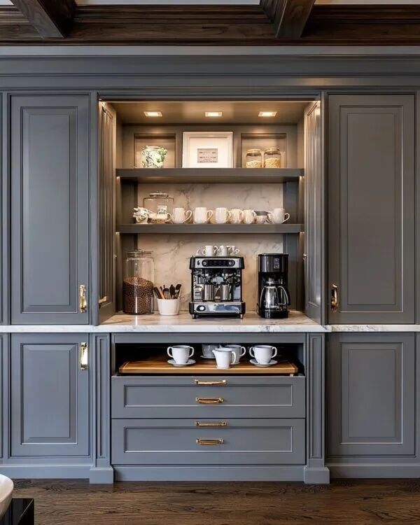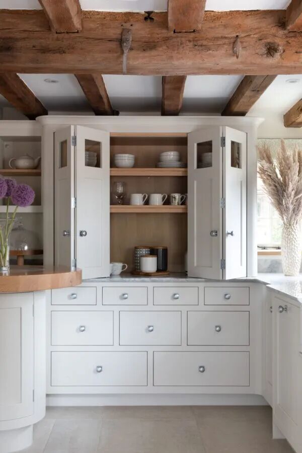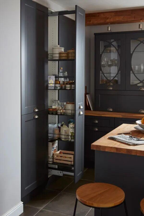还有特色花砖、复古开放式搁板、嵌入式咖啡角,甚至连圆形储藏室、抽拉式窄柜都安排得明明白白,原来储藏室才是厨房的灵魂啊