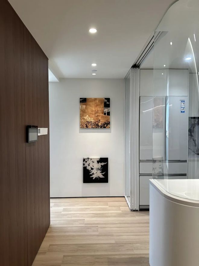 透明的画框材质,虽不能完全遮挡强电箱,但空间立体感却非常强,从而让电箱不再突兀,效果也更轻巧现代。