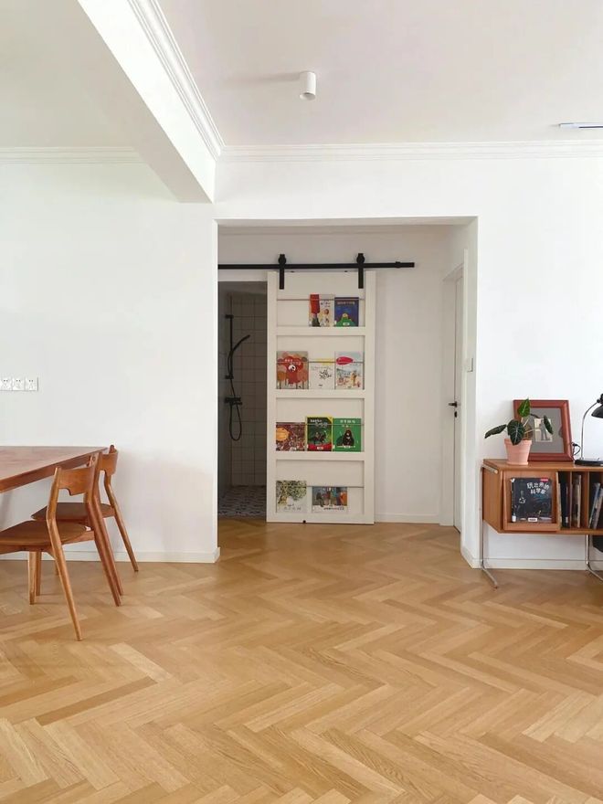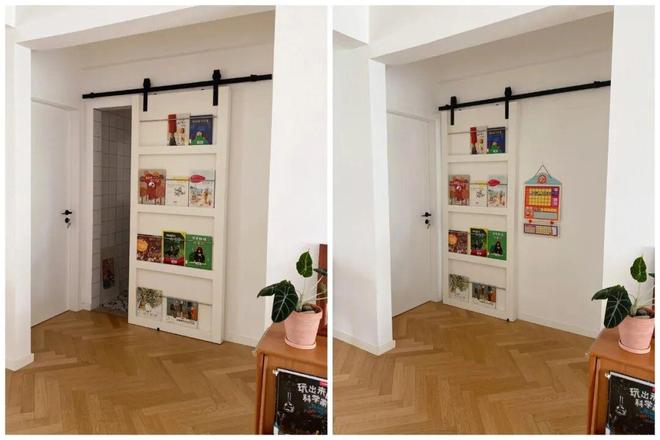 网友@朵拉快跑:我家卫生间门和入户门刚好错开,不过进门后还是能看到卫生间门,所以就给卫生间定制了一扇谷仓门。