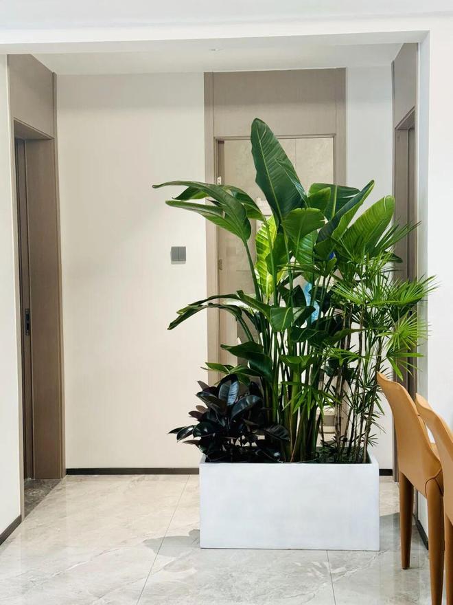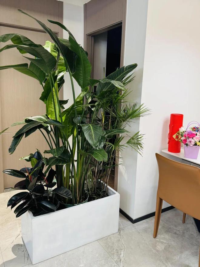 水泥盆尺寸为80X38X38cm,刚好可以遮挡卫生间门,盆里种了天堂鸟、黑金刚、金山棕等绿植,前后差不多花了500块。