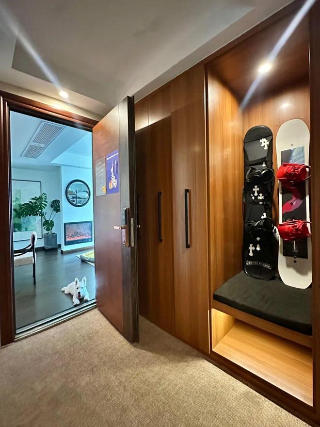 网友@满满Man:当初买房就是看中了这块前室空间,本着不影响消防的原则,就做了一组大鞋柜和一些简单装饰。