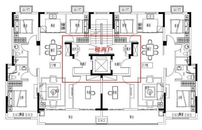 简单来说,就是一层只有两户人家,并配备了两部电梯,且出了电梯门就是一块“前室”空间。