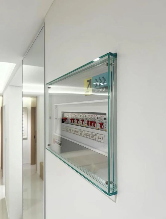 透明的画框材质,虽不能完全遮挡强电箱,但空间立体感却非常强,从而让电箱不再突兀,效果也更轻巧现代。