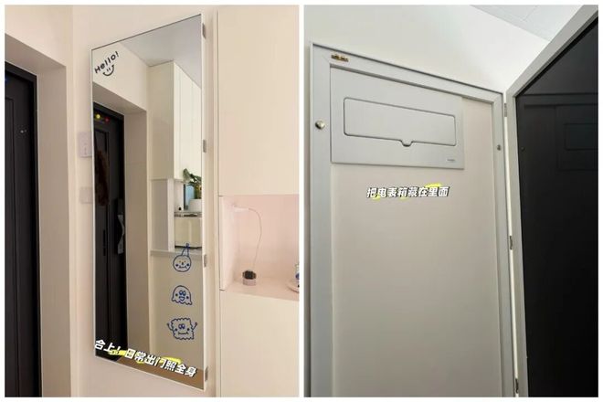 需要注意的是,由于弱电箱里的设备需要散热,所以我们在购买全身镜时,内部需要留出一点缝隙,有个几厘米就行。