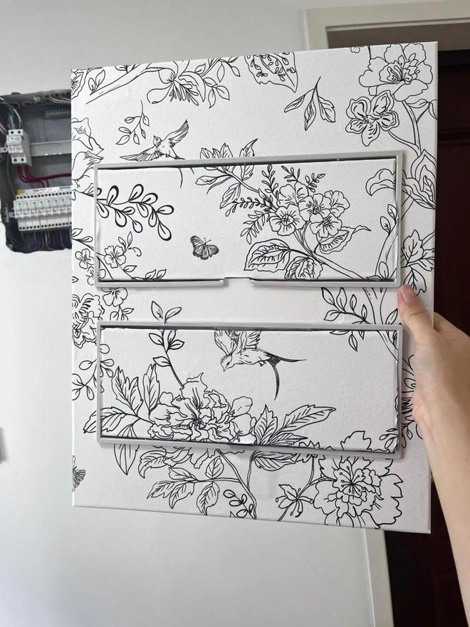 网购一卷自己喜欢的贴纸,也可以多买几卷自由组合,反正只要几块钱,然后将强电箱面板拆下来贴上去即可。