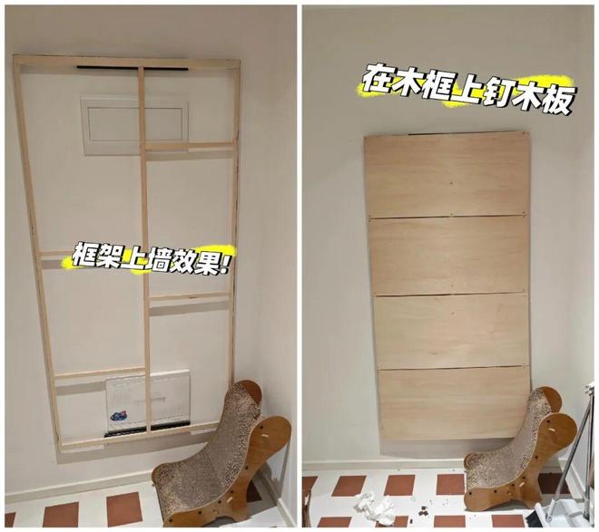 2)用螺丝将木框固定在墙面滑轨上,并在木框上钉上木板,最后将毛毡板贴上去即可。