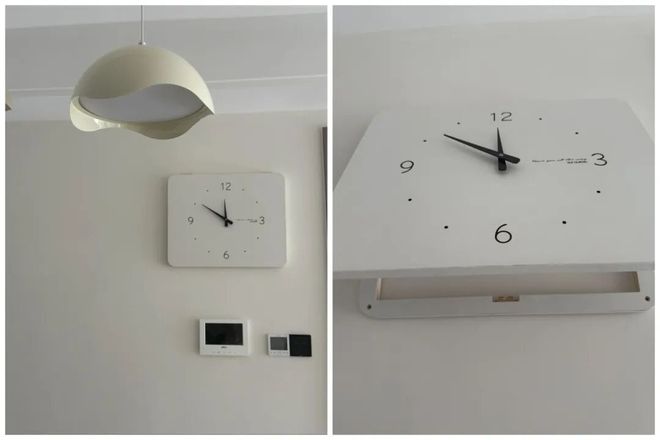 不少家庭都对壁挂钟有一种执念,明明用不上,却还是想挂一个。与其单纯装饰,不如顺手用它遮挡强电箱。