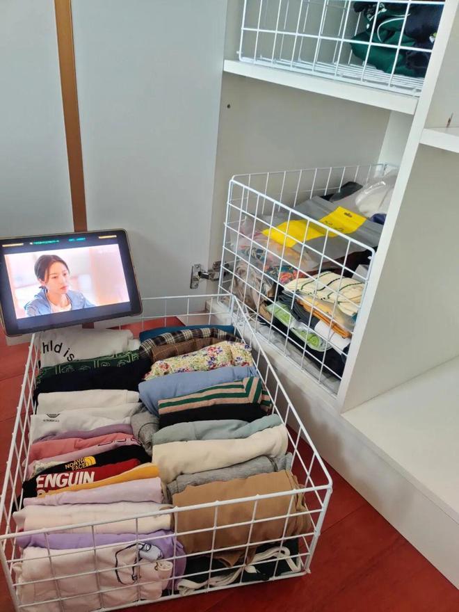 3)想给衣柜配个收纳筐,又找不到合适的尺寸?那就用5片网格片拼一个收纳筐,不仅成本低,用起来也方便。
