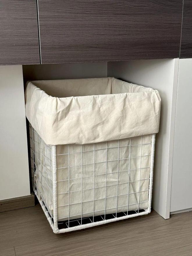脏衣篓,基本上家家都需要,如果你买不到合适的,那么就网格片自制一个,其实也很实用。