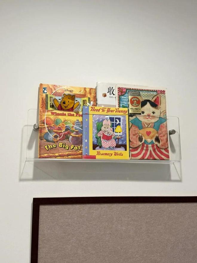 亚克力书架,有娃家庭都不陌生吧,一般都会安装在过道或者儿童房里,专门收纳绘本和图书。