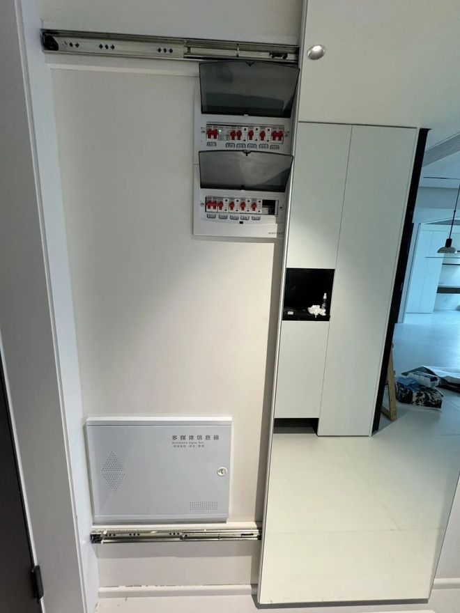 需要注意的是,由于弱电箱里的设备需要散热,所以我们在购买全身镜时,内部需要留出一点缝隙,有个几厘米就行。