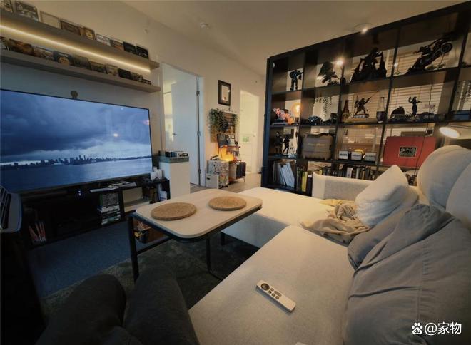 别看现在的客厅面积缩小了一半,但反而成为了这位男生独居小家最舒服的地方之一。