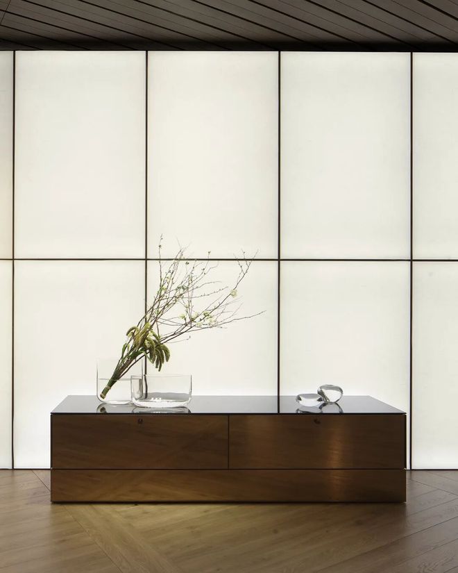 在2026巴黎Maison & Objet期间,Maxalto带来其2026新品系列,该系列以“光之幕启La Parenthèse de Lumière”为灵感脉络,由知名设计师Antonio Citterio操刀。通过材质与工艺的新尝试,如光一般的轻盈流动成为了该系列的突出特色。比如全新Luminor储物单元采用PVD工艺,以精炼的香槟金或玫瑰金配色呈现,顶部覆以玻璃面板:它们之间独立存在,无需隐匿,却能融入任何环境。