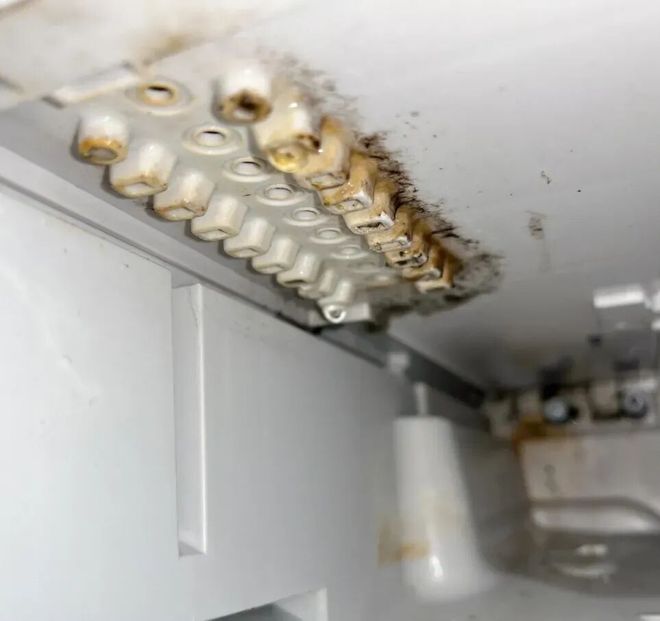 洗衣机投料盒的仓体空间,算是一块严重的“藏污纳垢区”了。也只有把投料盒抽出来,才知道内部有多脏。