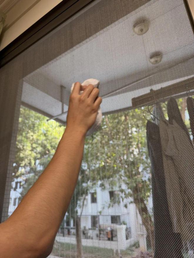 家里的纱窗拆不下来,怎么清洁?那就别拆了,将洗脸巾浸湿拧干包在刷子上,直接开刷就行。