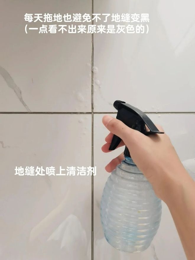 先用「洗衣液+水」调一个清洁剂,差不多两泵洗衣液和大半瓶水,摇匀起沫后喷在缝隙处。