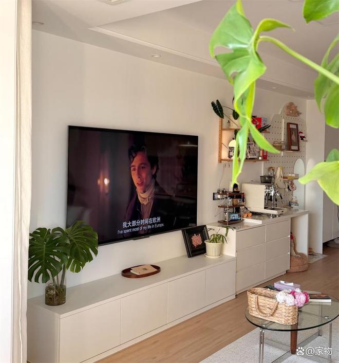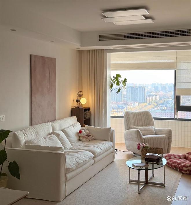 其一,简约却不失生活气息,在白色基础的小家上,添加柔和装饰中和冰冷感。