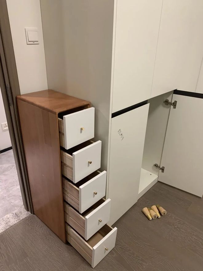 网友@折梅逢驿使:定制衣柜时为了避开进门旁边的开关,足足让了一块26cm宽的空间。