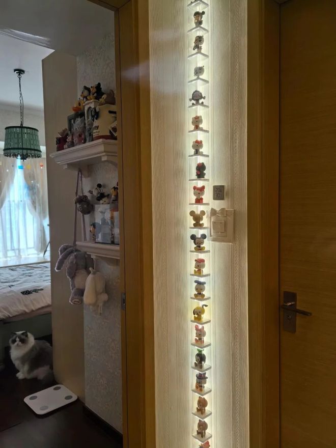 网友@sweet安年:谁说盲盒只能放展示柜里收纳的?家里的墙角就是一块天然的展示区,不占通道,不压空间,反而变成了一处小亮点。