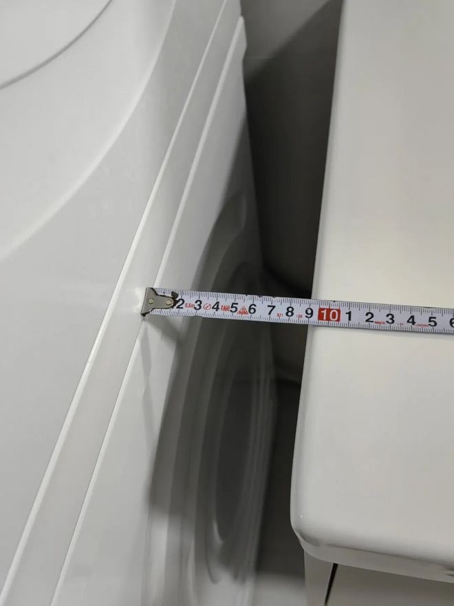 网友@糖葫芦的家:由于我想把洗衣机和烘干机放卫生间,于是浴室柜的侧面就闪出了一个9cm宽的“东非大裂谷”。