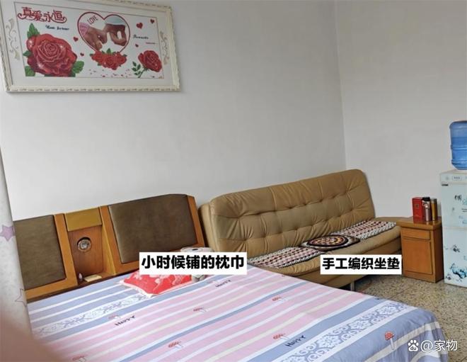 小时候的枕巾用到了现在,依旧散发着洗衣粉的香味,沙发座椅的坐垫也是自己做的,质朴中透着一阵美感。