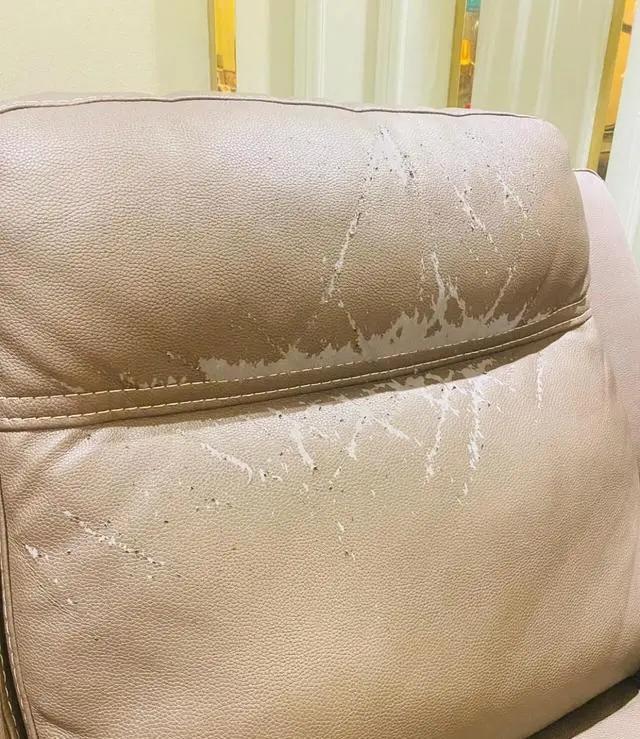 更糟糕的是用了一段时间就发现,沙发表面就开始磨损、掉皮。