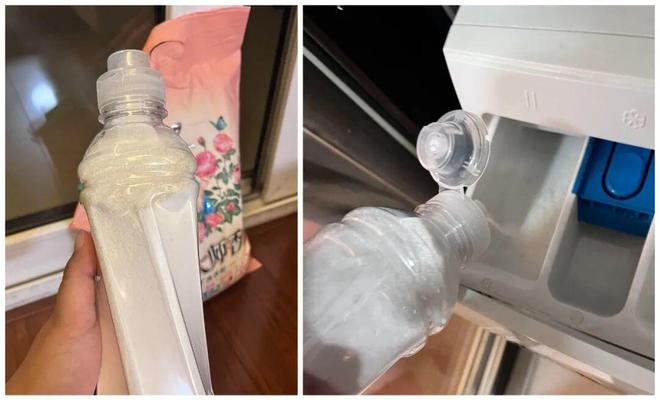 但用它来「分装洗衣粉」却是一个不错的选择,既能避免受潮,倒的时候也方便,记得把瓶口十字嘴用剪刀戳一下。
