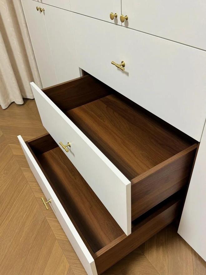 另外,不少家庭的收纳痛点,往往不是柜子不够多,而是抽屉做少了,以及没有做对。