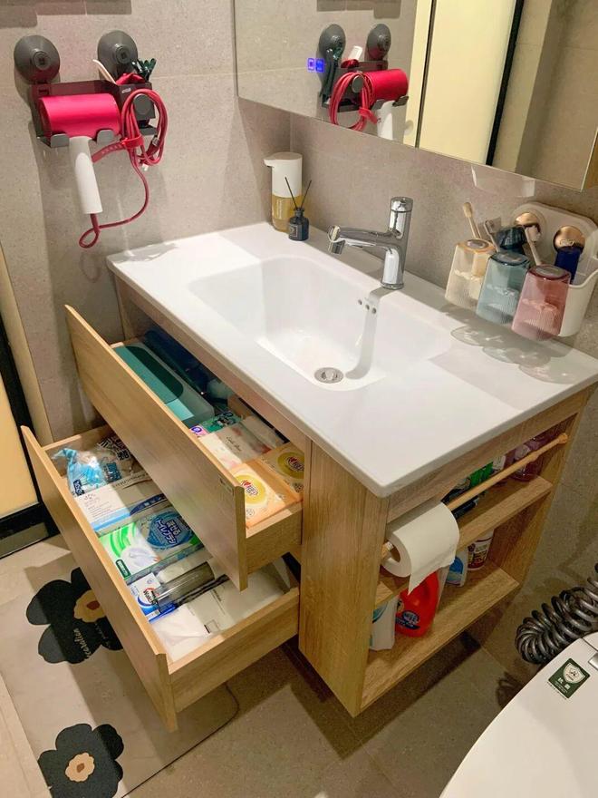 市场上的浴室柜,一般有柜门和抽屉两种结构,我们在购买时,一定要选择「抽屉结构」的柜体。