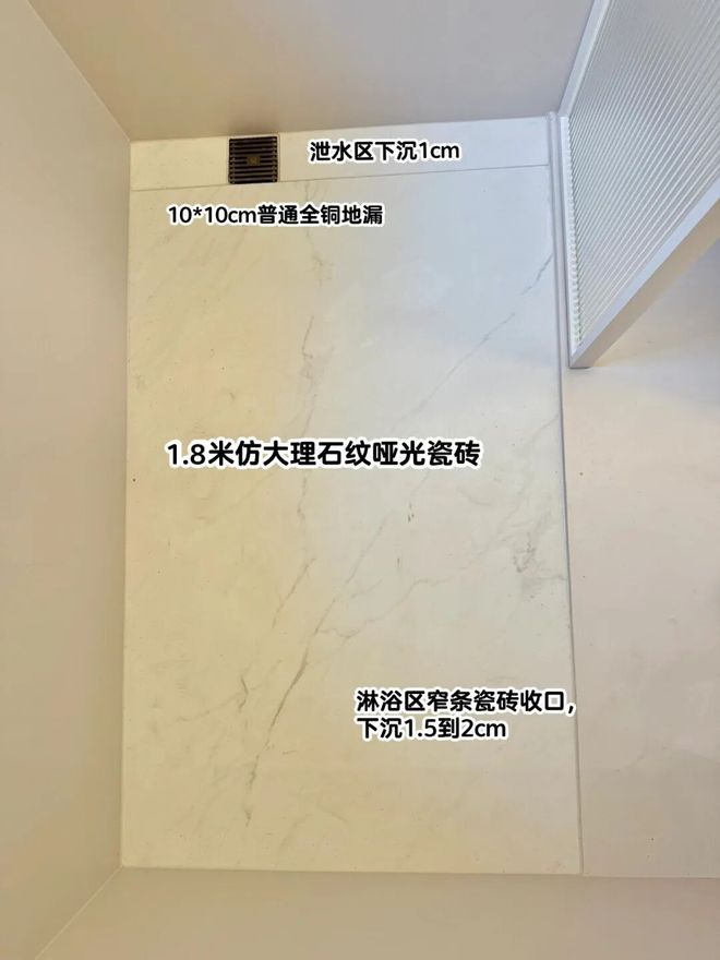 不过地漏处记得做下沉1cm和下水坡处理,保证大砖上的水流下去后,可以完全排掉,避免积水。