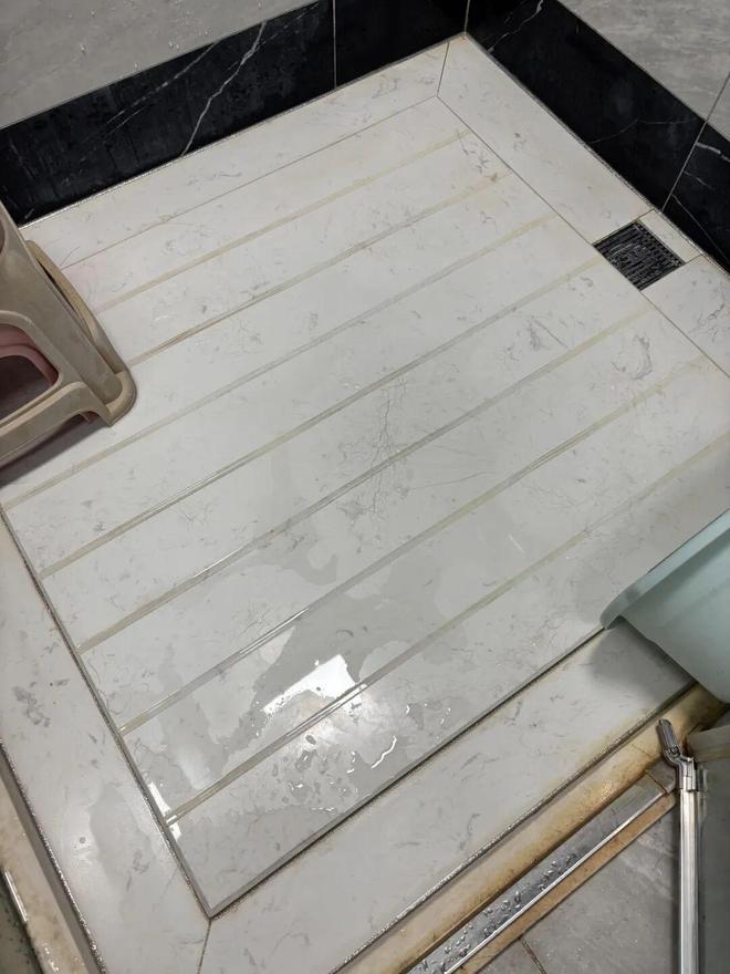 除此之外,中间的防滑槽如果开槽太宽、太深,同样会积水,导致淋浴区久久不能自然风干。