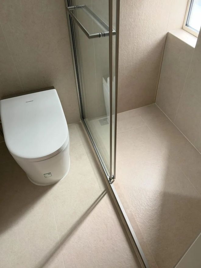 有一个问题需要注意,就是地砖多少会有一点积水问题。毕竟整铺不可能留太大坡度,记得洗完澡用刮水器刮一下。