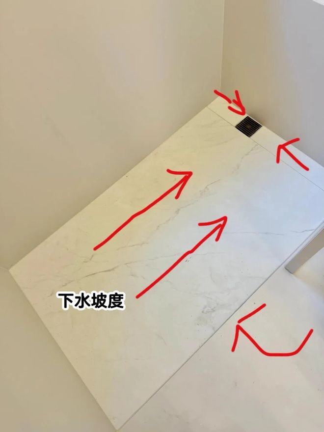 简单来说,就是给淋浴区地面整铺一块石材,并给石材做拉槽处理(防滑),以及四周留一圈下沉式排水槽。