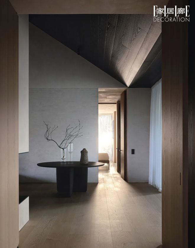 步入室内,空间延续了他一贯的设计哲学:空间自由流动、安静温暖,家具或定制、或意大利制造,与建筑融为一体。北侧的立面内敛低调,南侧挑高开放,露台、庭院和石板地面层层递进。光线透过窗洒落,手触天然木材,脚踩石板,心也随之慢下来。这里没有多余的装饰,每一件物品、每一道光线都恰到好处。极简并非减少,而是让一切回到本质:材料的触感、光线的温度,以及生活本身的宁静。
