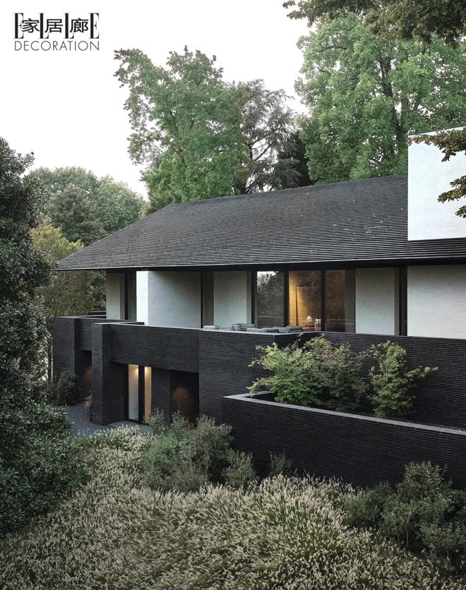 沿着别墅前的小径,我们走向比利时建筑师Vincent Van Duysen的米兰住宅。别墅依傍陡峭的斜坡,几何的体量安静而有力,熏黑的橡木屋顶沉稳厚重,白色石灰抹面砖墙在阳光下泛着柔光。庭院里的菩提树、松树和栗树轻轻摇曳,落地窗把绿意和光线引入室内,斑驳的光影洒在石板和木地板上。这里像是设计师精心布置的舞台,在这里,光线与材质的细微变化随处可见,脚步不自觉地缓了下来,去用心感受每一处细节。