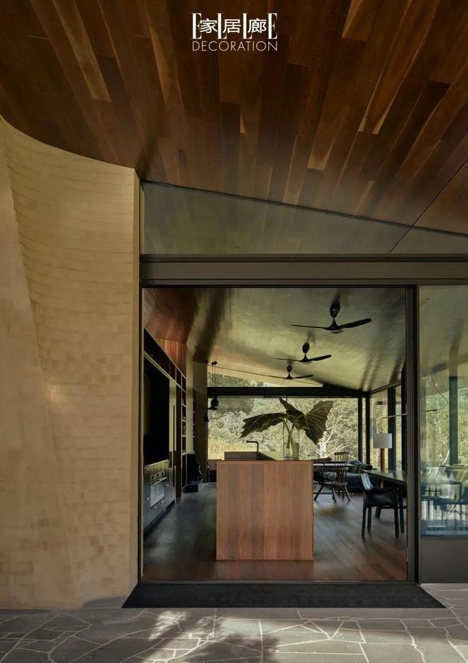 推门而入,三座亭子式建筑与庭院、露台、石板地面融为一体,仿佛每一步都在与山谷对话。屋顶的太阳能板、雨水回收与废水循环系统,让住宅完全脱离公共电网,实现真正自给自足。室内大面积玻璃引入山谷景色,天然木材、石材与亚麻色系织物呼应周围环境。空间开放而宁静,让人放慢脚步,感受光线、风、水与土地的呼吸——Howqua River Lodge正是如此,不以建筑或科技为名来统治或改造自然,而是理解自然的基础上,与自然共生共居。