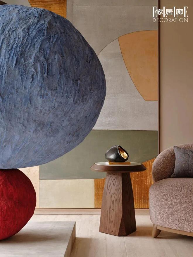 推开落地窗,晨雾与树影轻轻滑入室内,光影在木材、石材与织物间流动。宽敞的客厅与餐厅自然延伸至庭院,家中陈列的当代艺术作品和收藏如同小型画廊。为了与朋友共享时光,他们特别将客厅打造为可容纳80人派对空间,让聚会、艺术与自然相互交融。在这里,每一处细节都在呼应森林的节奏,让人不自觉地慢下来,感受人与空间、人与自然、人与艺术的多重联结。