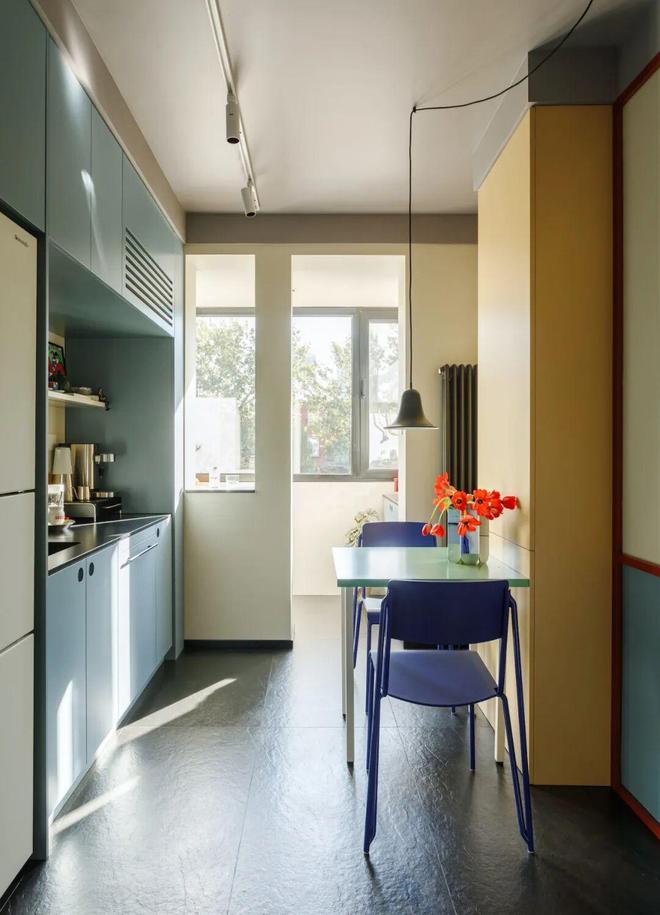 只要把握了前两个原则,中古风橱柜既可以浓颜——大胆用上各种色彩,也可以淡颜——温柔的莫兰迪色,甚至简单白色也很出彩。