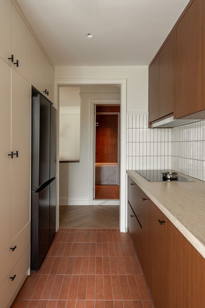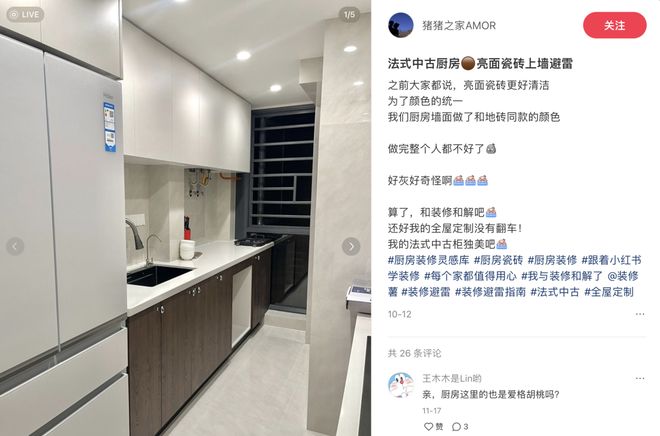 网友@猪猪之家AMOR说:法式中古厨房,亮面瓷砖上墙,做完人都不好了……还好全屋定制没翻车,不然真要崩溃。