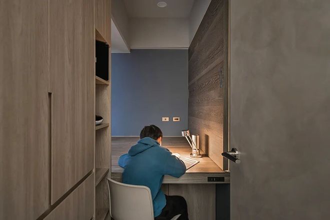 把其中一房一分为二,用超大拉门做隔断,既是独立私密的儿童房,又能合并成超大玩乐区,动线流畅无阻碍,空间有弹性,心也更开阔。