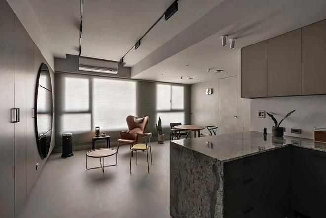 为了让空间更通透灵活,设计师大胆拆改格局:原始3房变2房,让出超大面宽窗景,日光毫无遮挡漫进屋内。