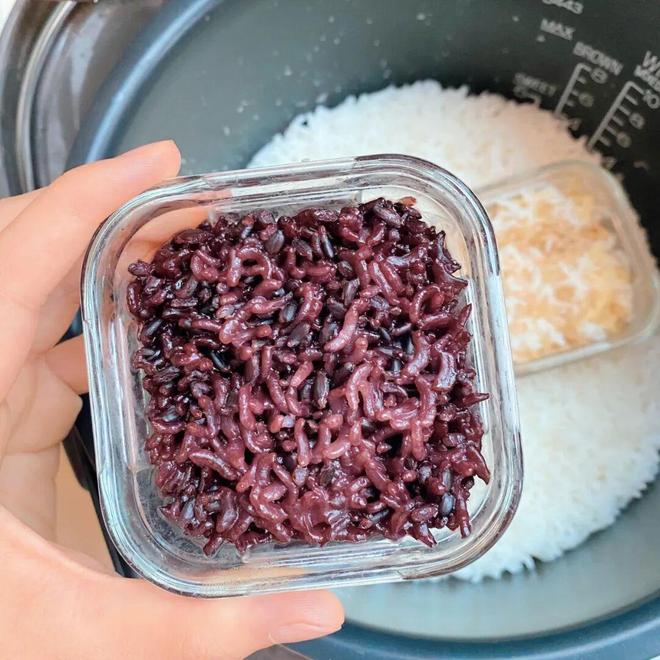 可以将杂粮米单独放进耐高温的玻璃碗里,然后再放进电饭煲里煮,一次就能煮出三种米饭,简单又省心。