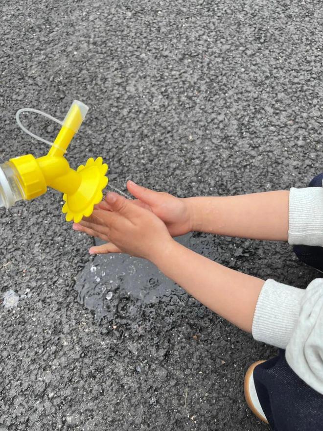 就拿这个便捷式花洒喷头来说,本以为它就是个玩具,后来发现外出时,把它套在瓶子上给孩子洗手,简直不要太方便。