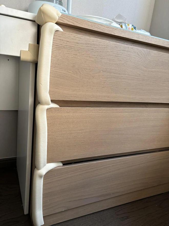 至于抽屉,我们可以在抽屉两侧安装上防撞条,从而起到一个限位的作用,避免夹到孩子手。