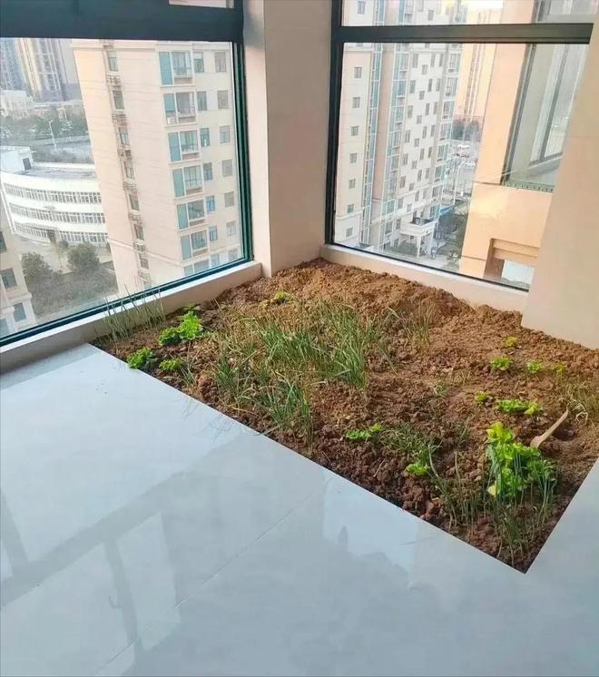 这样的阳台设计,网友们戏称:这块“地”没有经营好啊,里面并没有出现生长旺盛的庄稼,长的只是一些杂草!