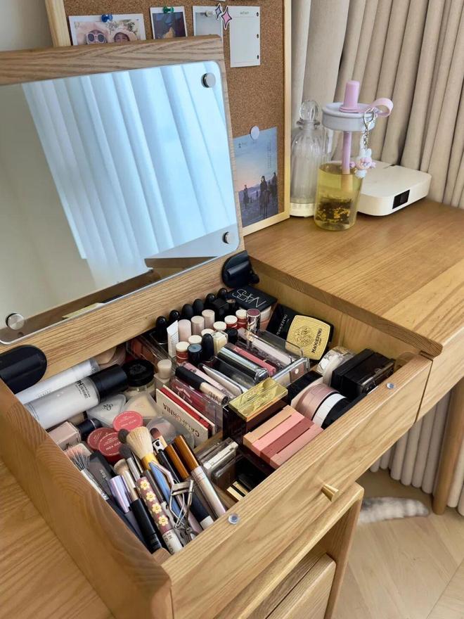 2)想二次利用化妆桌面空间,但每次化妆时都需要把桌面物品收拾掉,那叫一个麻烦。